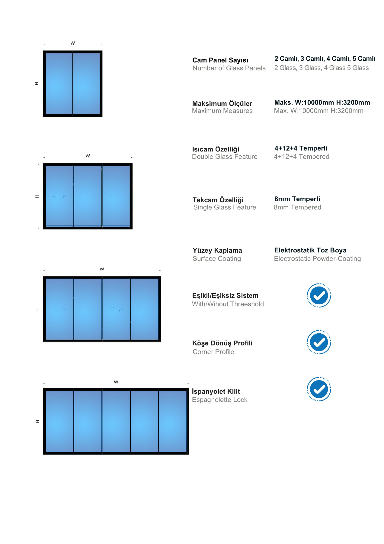 otel, kafe, restoran, villa, konut, teras, kış/yaz bahçesi ve alışveriş merkezleri gibi mekanlarda bölmeler oluşturmak ve geniş alanları daha fonksiyonel hale getirmek için tasarlanmıştır. Pergola, bioklimatik ve cam tavan sistemleriyle entegre edilebilmesi sayesinde dört mevsim kullanıma uygun yaşam alanları sağlar.